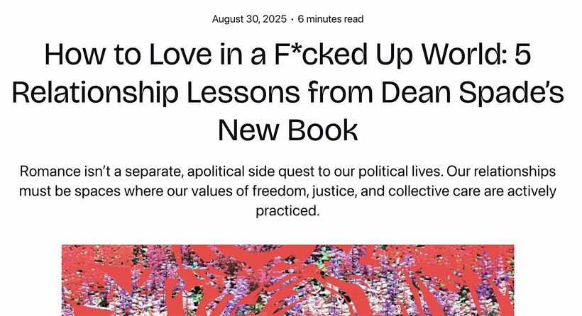 This week I spoke with longtime activist and author Dean Spade about the complexities of relationships and the challenges we face in a society shaped by disposability culture. We discussed the fear of being wrong in public and of conflict and feedback. He spoke about why self-help often falls short in addressing systemic issues and shared some insights from his latest book, Love in a F*cked Up World, which offers practical advice on navigating personal growth and connection in a world that often feels isolating and disconnected. I loved both the book and this conversation. Let us know if you listen!